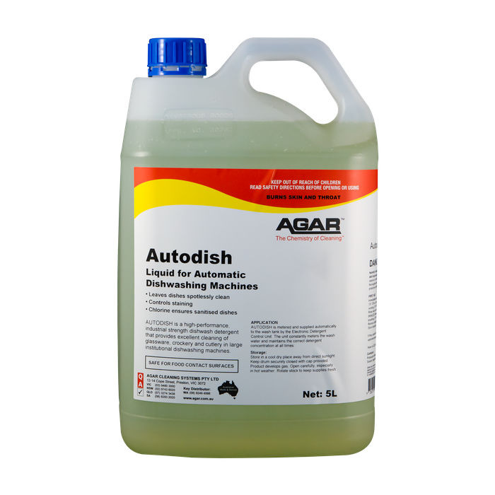 AUTODISH is a high-performance detergent that provides excellent cleaning of dishes, glasses and cutlery. AUTODISH controls staining and leaves dishes spotlessly clean. The chlorine in AUTODISH ensures that dishes are also sanitised.