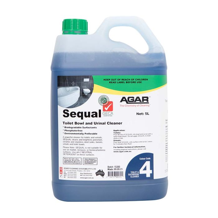SEQUAL is a powerful cleaner for toilets and urinals. It is a thickened product that clings to vertical surfaces. SEQUAL has been specially formulated to be environmentally preferable.