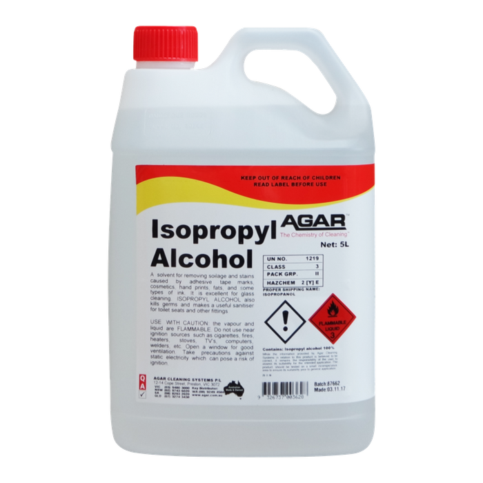 Isopropyl Alcohol is 100% isopropyl alcohol. It is used as a solvent and a sanitiser in the cleaning industry, but also has many other uses including as an antiseptic and in chemical reaction processes.