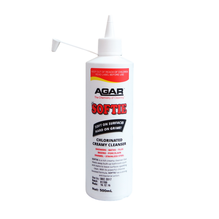 Softie is a chlorinated creme cleaner with soft polishing abrasives which boost soil removal and leave surfaces crystal clean and shiny.